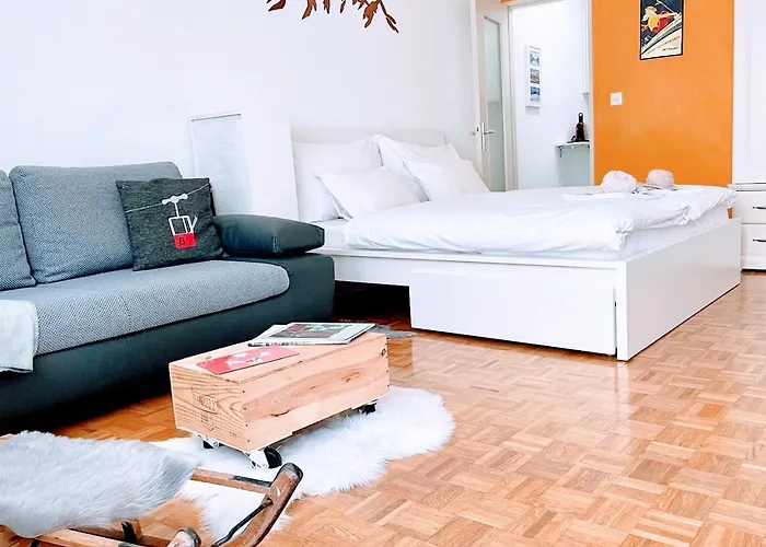 Studio Wolli - Stylish & Central - Steps To Matterhorn Gondola Zermatt, som ligger ungefär 10 minuter till fots från Bergführerdenkmal, erbjuder närhet till många sevärdheter. Om du är intresserad av skidåkning i Zermatt har den här lägenheten med 1 sovrum skidförvaringsrum.